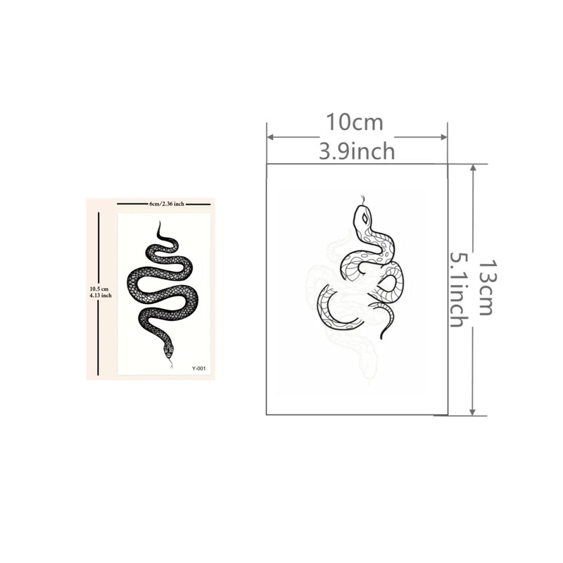 • 🐍DIMENSIONS: Each tattoo sheet measures 3.9 x 5.1 inches and 2.36 x 4.13 inches, perfect for application on various body parts including hands, arms, neck, and legs