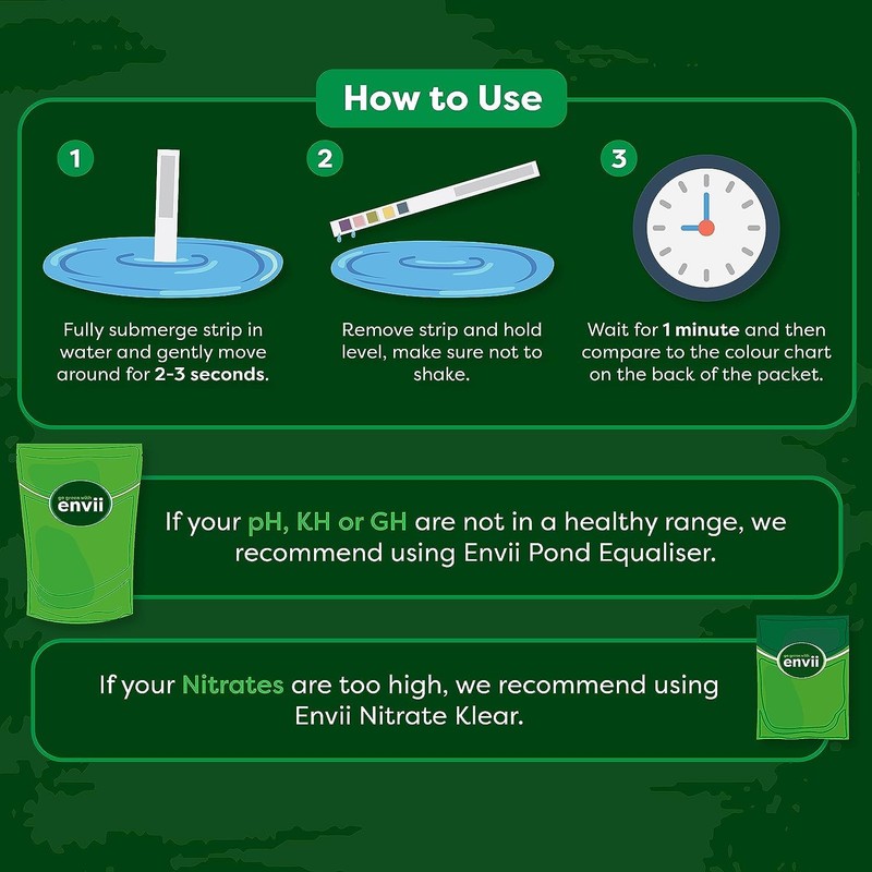 envii Pond Test Strips - 5 in 1 Pond Water Test Kit - Testing for pH, KH, GH, Nitrates and Nitrites for use in Garden Ponds, Aquariums & Fish Tanks - 25 Strips