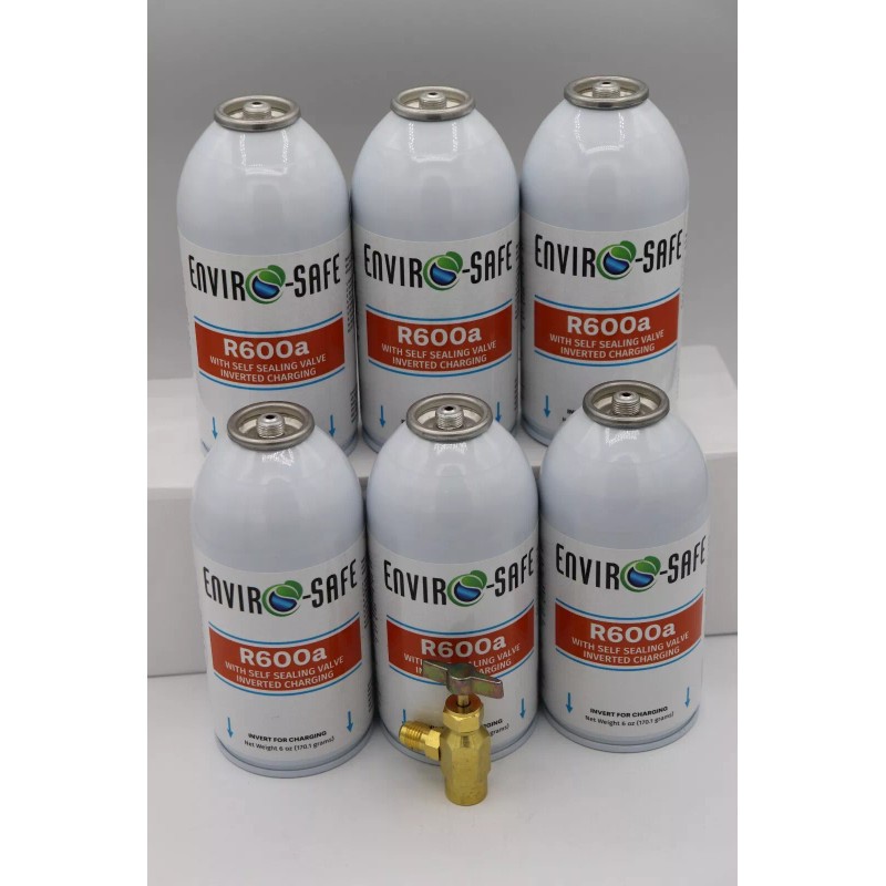 Enviro-Safe R-600a Refrigerant with 7/16" Self Sealing K28 6 oz, 6 cans w/tap