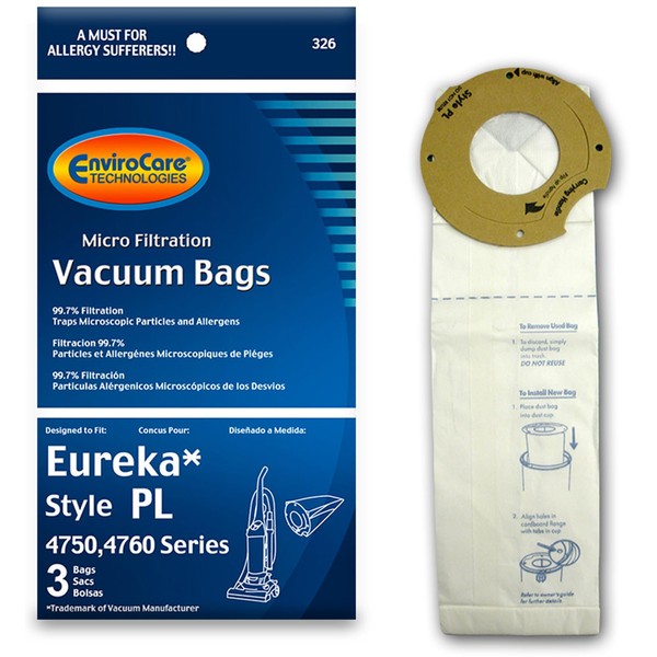 - EnviroCare Replacement Vacuum Bags for Eureka Type PL 4750, 4760 Series Uprights 3 Pack