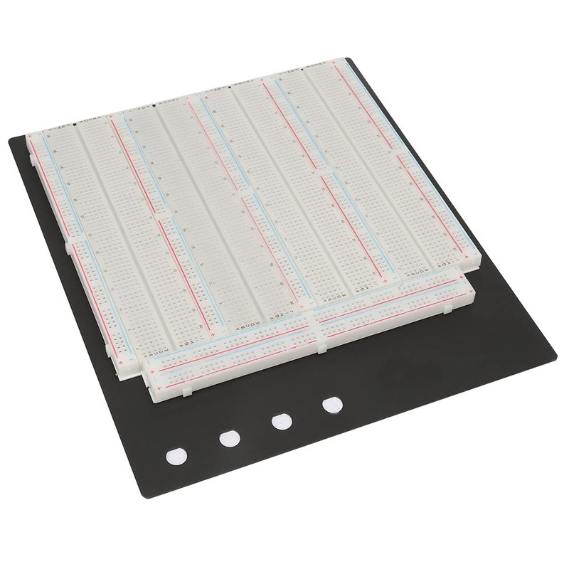High quality breadboard designed for solderless testing of electronic circuits. Quickly build an electronic circuit prototype that can be easily modified or modified. Plastic and metal material, reusable, environmental recycling. No soldering required, saving circuit assembly time. Perfect for electronic circuit assembly, debugging and training.