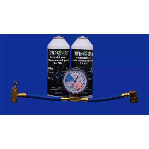 EnviroSafe R134a Replacement Refrigerant for SUV | 2 Cans + Charging Gauge