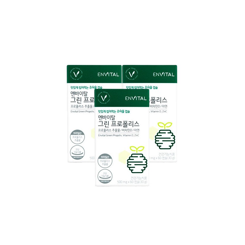 Envital Green Propolis 600mg / 엔바이탈 그린 프로폴리스 600mg X 60캡슐 * 3박스