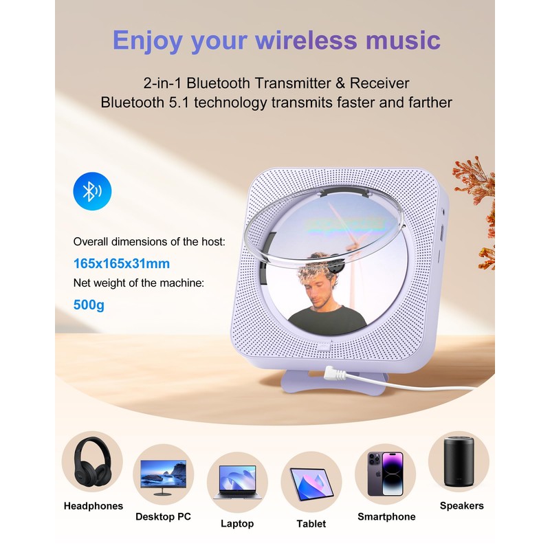 - 【 Multifunction CD Player】Widely compatible with CD, CD-R, CD-RW, CD-MP3, CD-WMA, supports single song loop, whole disk loop, random playback, can be switched at will, play in order, but also work as a FM radio, bluetooth Hi-Fi speaker, TF card music playback, mini home speaker, USB flash drive player.
