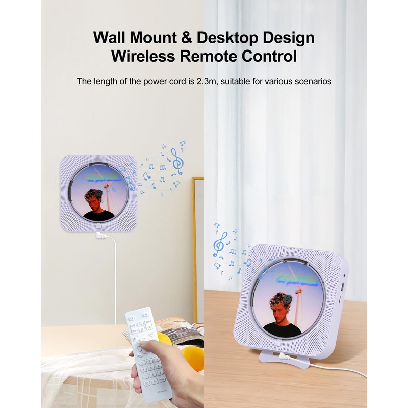 - 【Wall & Desk Creative Design】There is a back mount on the home CD players so it will stand stability on the desk. It also can be mounted on the wall easily with the tool in the package, which is more space-saving. You can adjust it with remote control within 5m and set the timing switch, you can enjoy music freely.