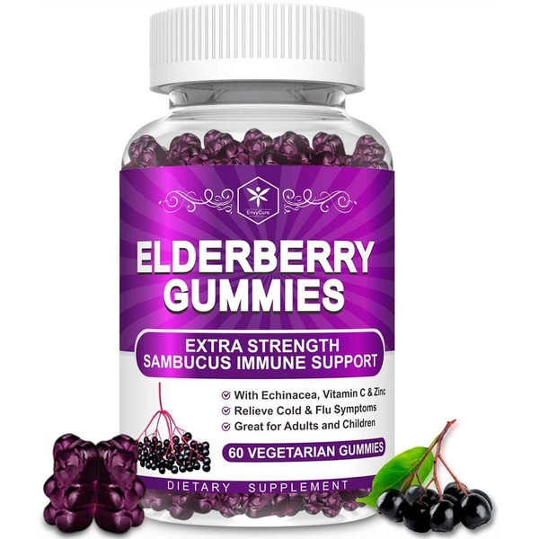 EnvyCure Sambucus Elderberry Gummies with Vitamin C, Zinc & Echinacea for Immune Support