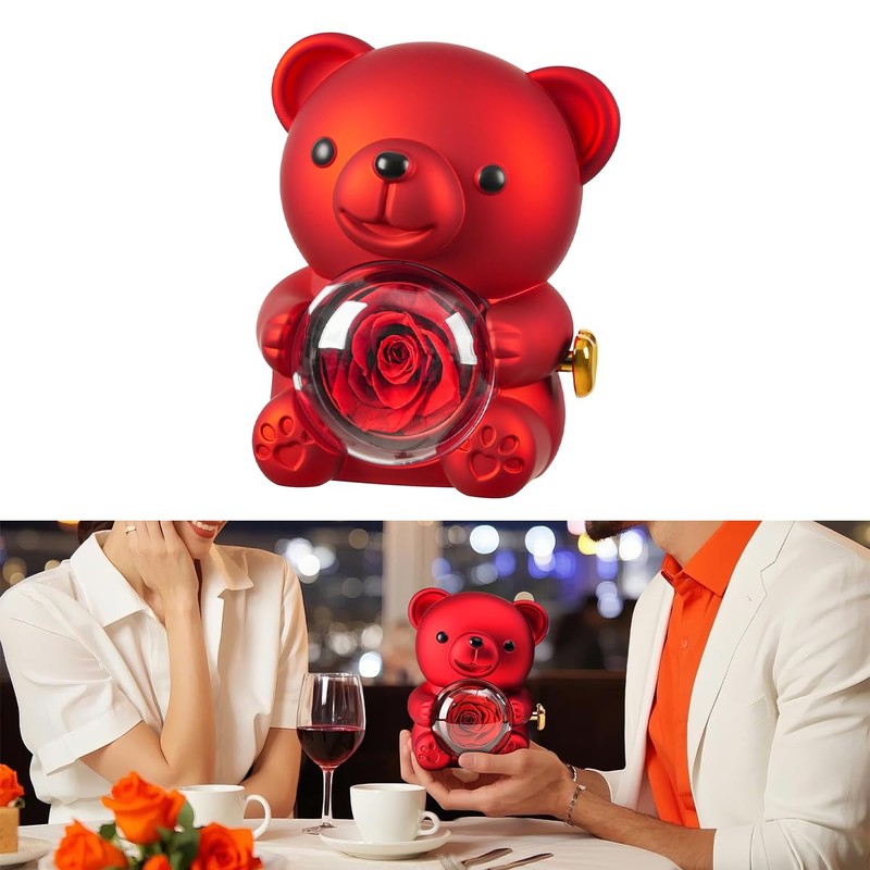 - This charming ornament combines preserved roses and a bear figure, offering a thoughtful and enduring gift option. Its timeless design suits various occasions, providing a lasting reminder of special moments without the need for frequent upkeep.