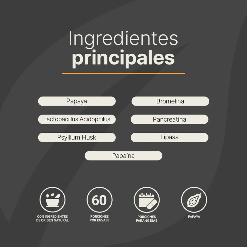 Alcanza tu balance interno con Enzym Blend B Life. Nuestra concentración de 600 mg de una mezcla a base de Papaya, Lactobacillus acidophilus, Psyllium Husk, Papaína, Bromelina, Pancreatina y Lipasa, es una composición valiosa para tu bienestar, en comparación con otras formulaciones que proporcionan solo 400 mg. Contiene 180 cápsulas.