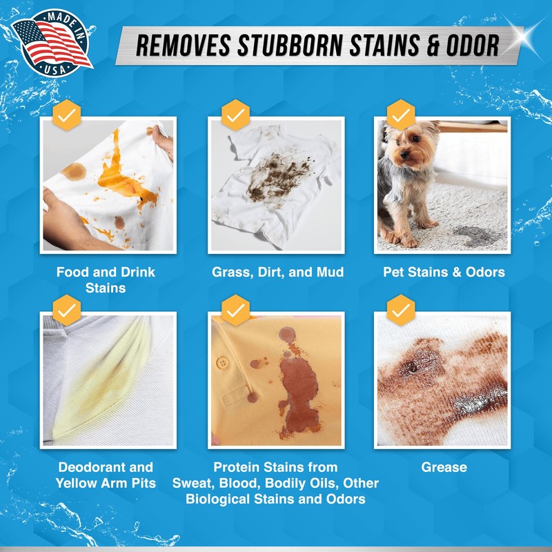 - Heavy Duty Stain Remover for clothes: Our Enzyme Laundry Additive Powder is formulated for Stain Removal of dirty clothes, perfect for Funk, Grease, Armpit Sweat stain, Blood stain, Oil and more!