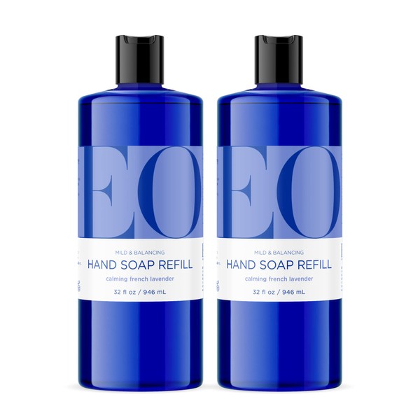 EO Liquid Hand Soap Refill, 32 Ounce (Pack of 2), French Lavender, Organic Plant-Based Gentle Cleanser with Pure Essential Oils