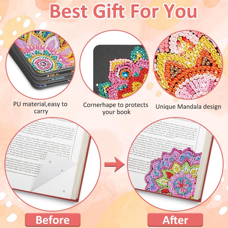 - High Quality: Diamond art bookmarks are made of leather, with beautiful patterns that are not easily damaged or deformed. The patterns and numbers are very clear, and the adhesion is strong, making it better for use in books