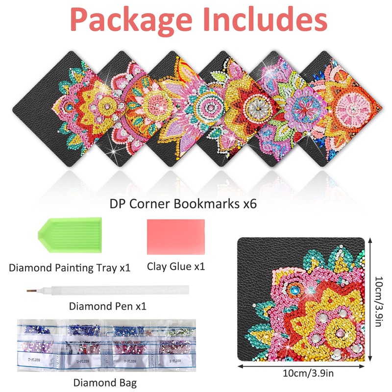 - Items Included: Diamond Art Bookmarks kits, Colorful Diamond , Clay glue,1 Small Adhesive Pad,1 Diamond Art Tray And 1 Diamond Pen