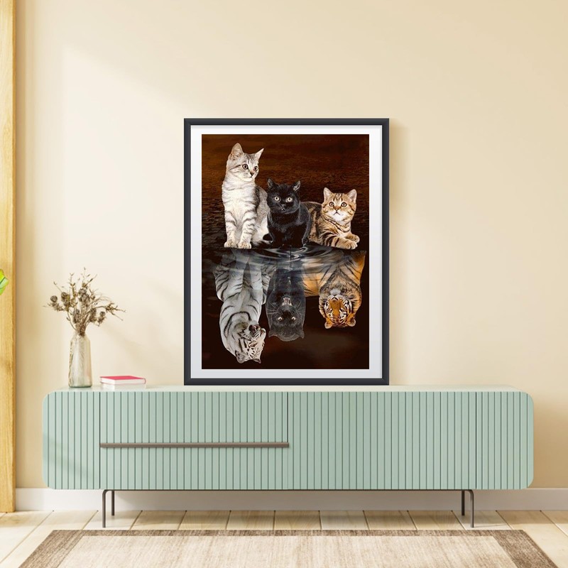 EOBROMD Diamond Painting Kits for Adults Cats Tiger Reflections, DIY 5D Diamond Art Kits for Adults Beginners, Full Round Drill Diamond Dots Crystal Craft Kits for Home Wall Art Decor Gifts 30x40cm