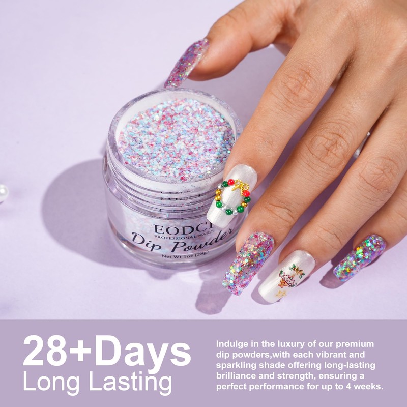 - Fashionable nail art dipping powder: Eodci is a professional manicure manufacturer. 1This elegant dipping powder nails is available in 28 g/1 oz, an increased capacity for all your daily nail art needs. Made of high quality powder without unpleasant smell, the powder is fine and smooth, has excellent durability.