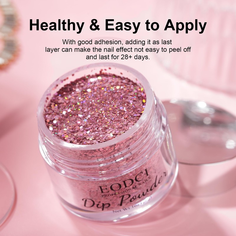 EODCI Glitter Dipping Powder Sparkle Nail Dip Powder, Rose Sequins Beauty Collection, Spring Dip Powder, Nail Dip Powder, Dip Powder Nail Powder for Nail Starter & Professionals, No Nail Lamp Required