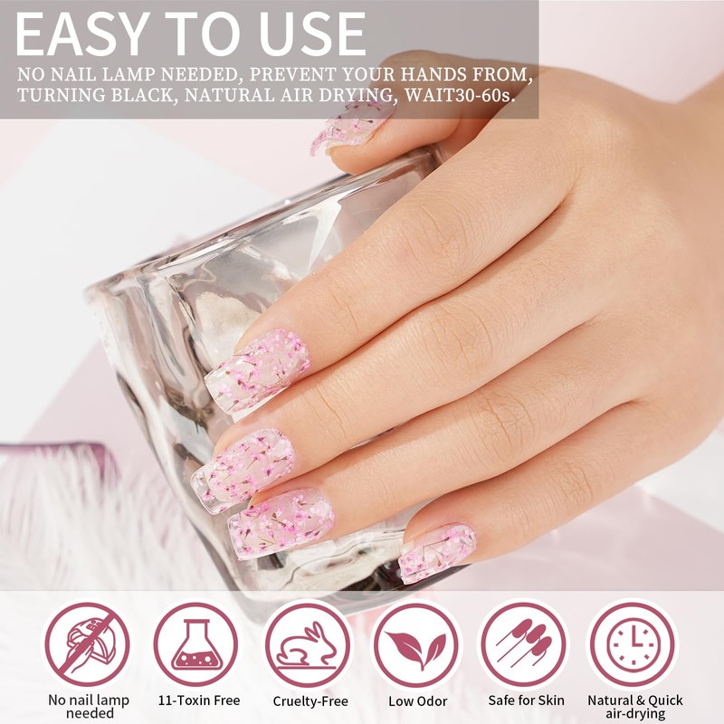 - 【No Nail Lamp Needed】Simply dip your nails into our nail dip powder, covering them completely. With quick drying properties, there's no need for a nail lamp, saving time and preventing skin darkening and nail damage.