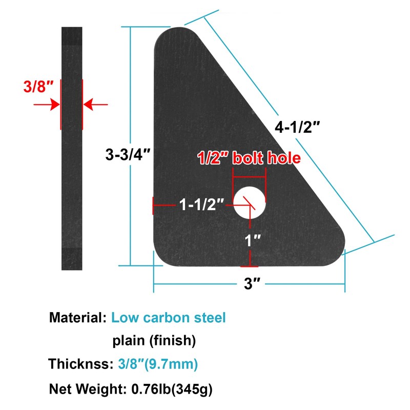 eoere 4 PCS Weld-On Shackle Mount Link Tabs, Triangle Gusset Bracket for Suspension, Chassis, 3-3/4" x 3" x 3/8" Thick, 1/2" Bolt Hole