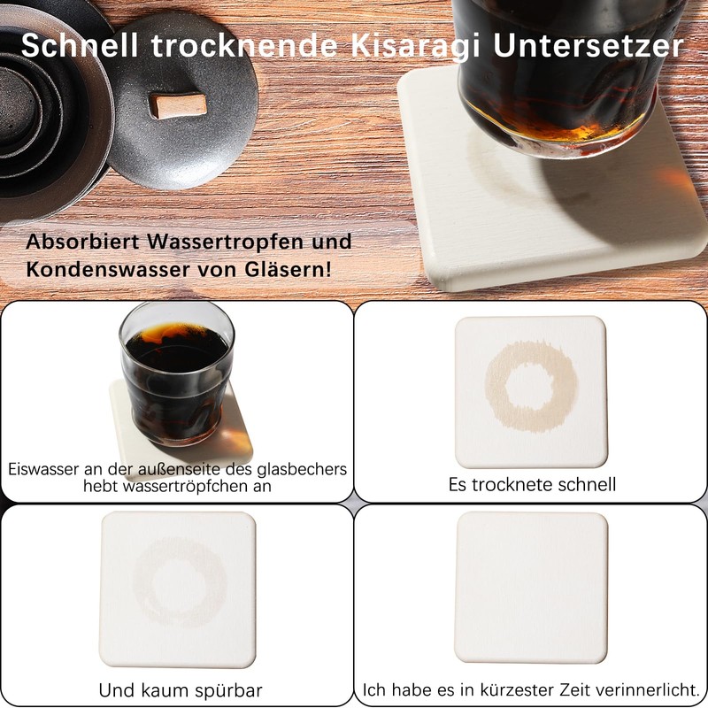 - Super absorbent material: the diatomaceous earth coaster is made of natural, super absorbent material. The interior of the diatomaceous earth has a pore structure that can quickly absorb and evaporate water without moistening the table.