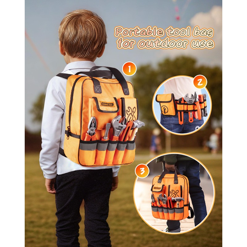 - 【Backpack & Handbag】36-piece tool set. All tools can be put in the bag, kids can play with them indoors and outdoors, easy to carry! Including belts, electric drills, eye masks, masks, helmets, hammers, wrenches and other tools.