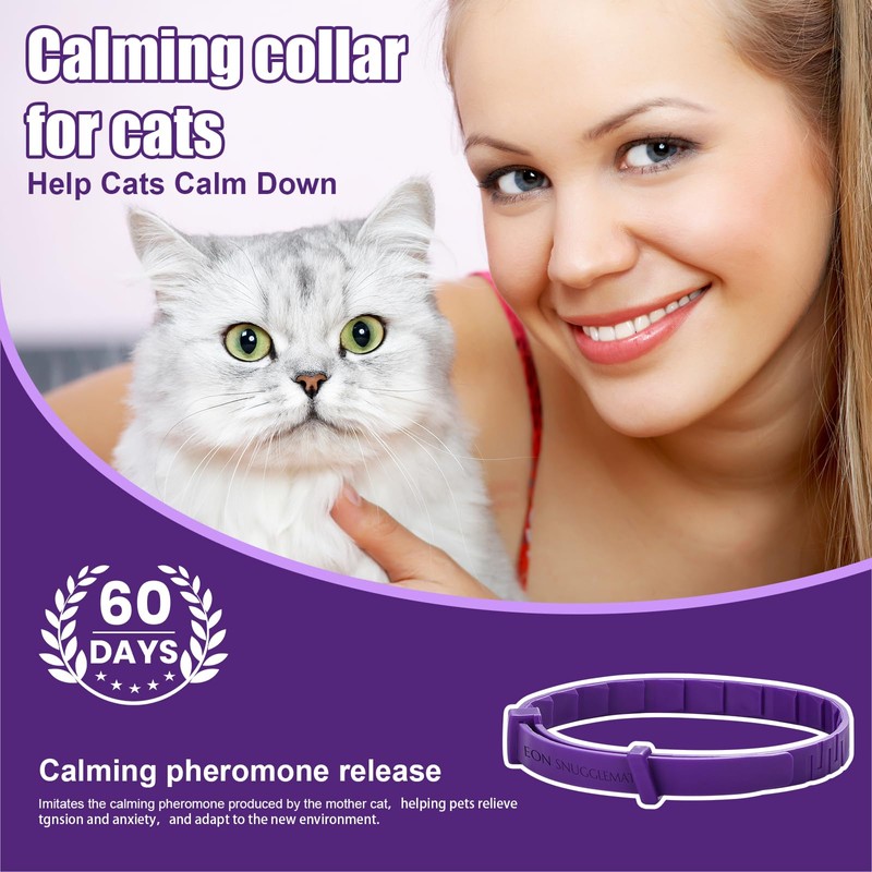 EON SNUGGLEMATES Calming Collar for Cats, Long-Lasting Pheromone Collar Helps Calm Cats for 30 Days, Reduces Stress, Helps Calm Cats from Anxiety, Loud Noises, and Separation, 1 Count (Purple)