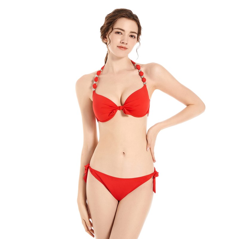 EONAR Women's Side Tied Bikini Sets Removable Swimwear Push Up Bikini Top with Neck Straps, red
