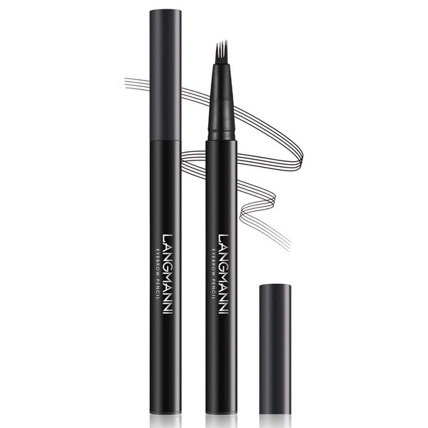 EONFAVE Waterproof 3D Eyebrow Pencil with 4 Fork Tips, Microblading Eyebrow Pencil, Eyebrow Pencil, Hair Drawing for Quick Drying, Durable Natural (Black)