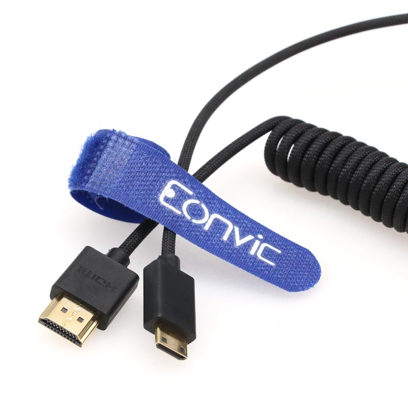 Eonvic 2.1 HDMI 8K HDMI Male to Mini HDMI Male Cable High Speed Extender Cable for Canon Nikon Panasonic GH3 Monitor (Black Coiled 50cm)
