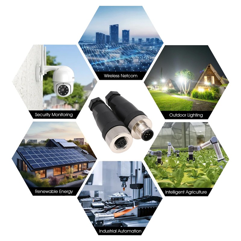 - M12 connectors are widely used in machine tools, communications, aerospace, marine, pharmaceutical equipment and other fields to connect wires and cables together.