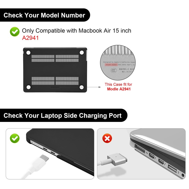 - ✔️Only compatible with New MacBook Air 15 inch M2 Chip with Liquid Retina Display & Touch ID 2023 Release Model Number: A2941, Please check the Macbook model "AXXXX" on the back before purchasing to ensure compatibility.