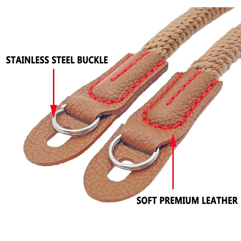 - ✔ Unser Kameragurt besteht aus weicher Premium-Baumwolle,das sich durch hohe Zähigkeit, Verschleißfestigkeit und Rutschfestigkeit auszeichnet. Der Stahlring am Ende des Seils dient zum Anschließen der Kamera und das Lederpad kann die Kameraschicht vor Kratzern schützen. Der Kameragurt ist flexibel und sehr robust, sodass Sie die Kamera jederzeit steuern können, ohne sich um Unfälle sorgen zu müssen.