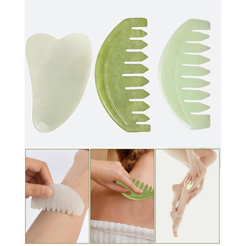 - Enhanced Skin Massage Experience: Experience deep relaxation with our premium gua sha jade stone comb set. Expertly crafted by seasoned artisans, each piece boasts impeccably smooth edges that glide gently over your skin.