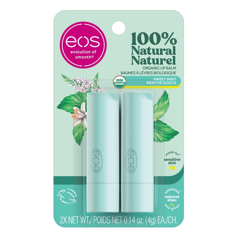 eos eos 100% Natural and Organic Lip Balm Sticks, Sweet Mint, 8g, 2 Pack