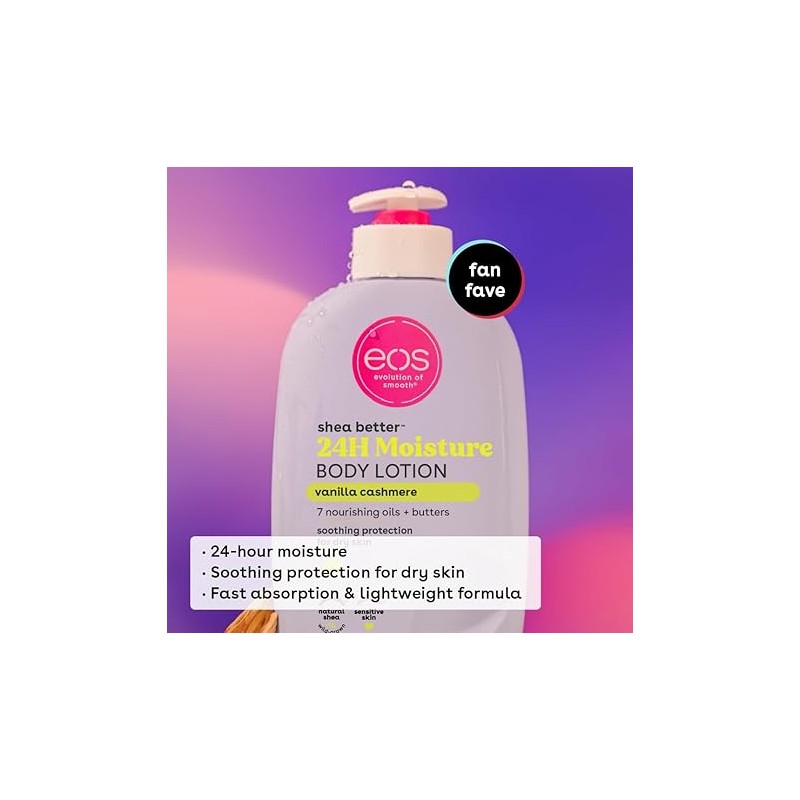 eos Shea Better Body Lotion- Vanilla Cashmere, 24-Hour Moisture Skin Care, Lightweight & Non-Greasy, Made with Natural Shea, Vegan, 16 fl oz