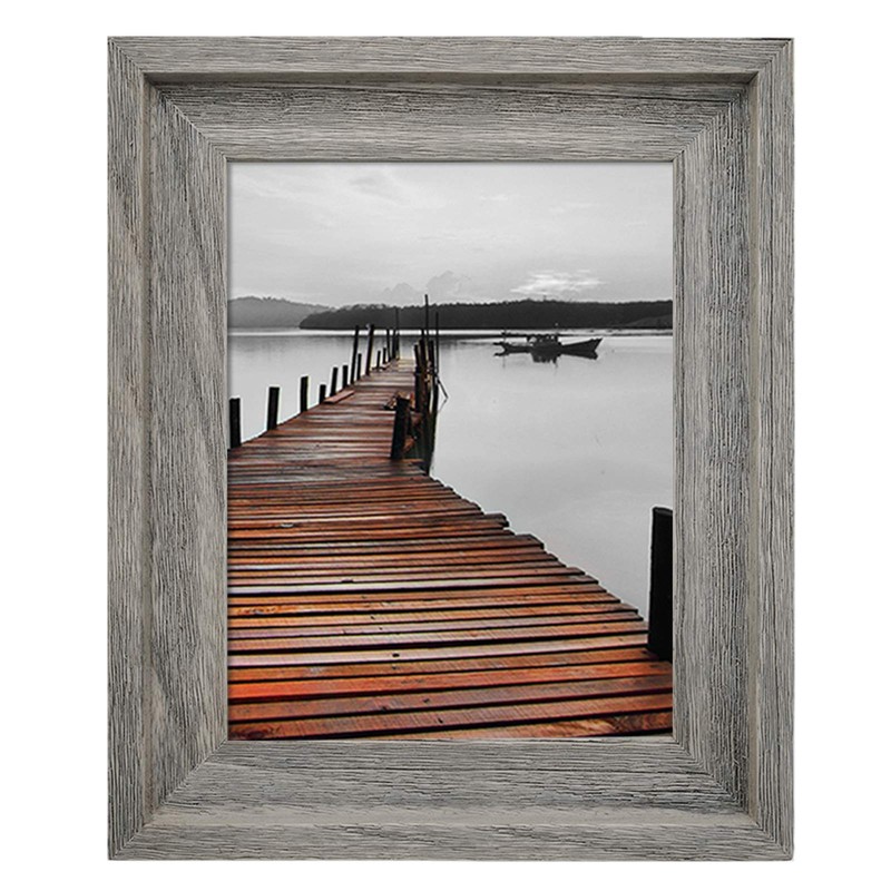 EosGlac Rustic 8x10 Picture Frame, Solid Wood with Glass Front, Wall Mounting or Tabletop, Weathered Grey