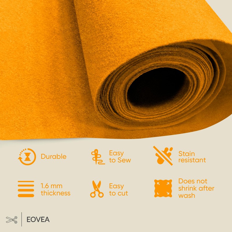 EOVEA | Acrylic Felt Fabric by The Yard | 72" Inch Wide -1.6mm Thick Felt Fabric | Non-Stiff Soft Felt Sheets | Felt Material for DIY,Craft, Sewing,Patchwork, Cushion, Padding(Orange, Half Yard)