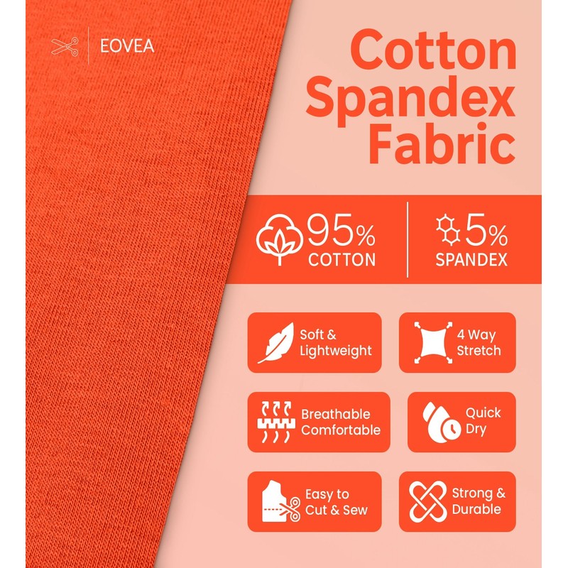EOVEA - Cotton Spandex Stretch Fabric - Jersey Knit - T-Shirt Fabric 60" Wide | 10 oz (Orange, 1 Yard)