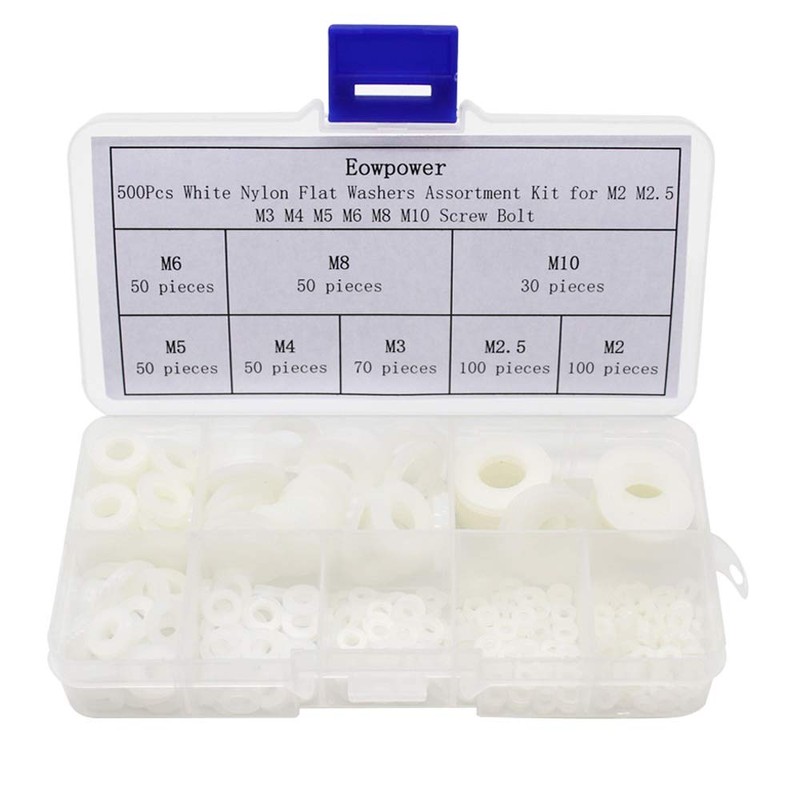 - It contains 500pieces/8 Sizes of the most commonly used Nylon washers