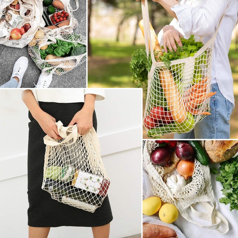 - ✔️ NO MORE PLASTIC The reusable mesh shopping bag has led to many possibilities that have saved the planet from the damage caused by plastic bags. Suitable for storing fruits, vegetables, especially in summer for swimming equipment and beach toys as well as related items. You do not take sand home.