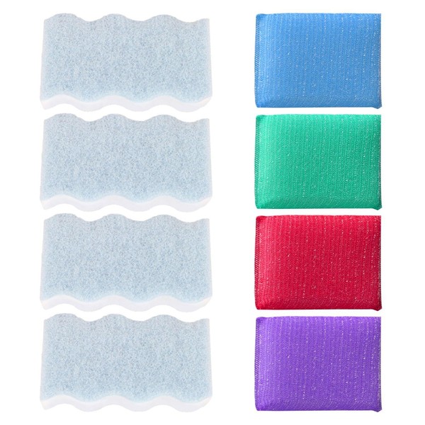 EOWVISN 4 Pieces S-Shaped Sponge Brushes And 4 Pieces Square Cleaning Brushes, Anti-Scratch Cleaning Brushes, Tableware Cleaning Brushes, Kitchen Cleaning Brushes, Kitchen Bathroom Cleaning Tools
