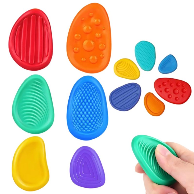 - The soft silicone stones are ideal for keeping hands busy during times of stress and anxiety. Repeated rubbing of these textures helps relieve tension, replaces people's repetitive and unconscious behaviors, satisfies all sensory needs, and helps reduce anxiety and stress in the brain.
