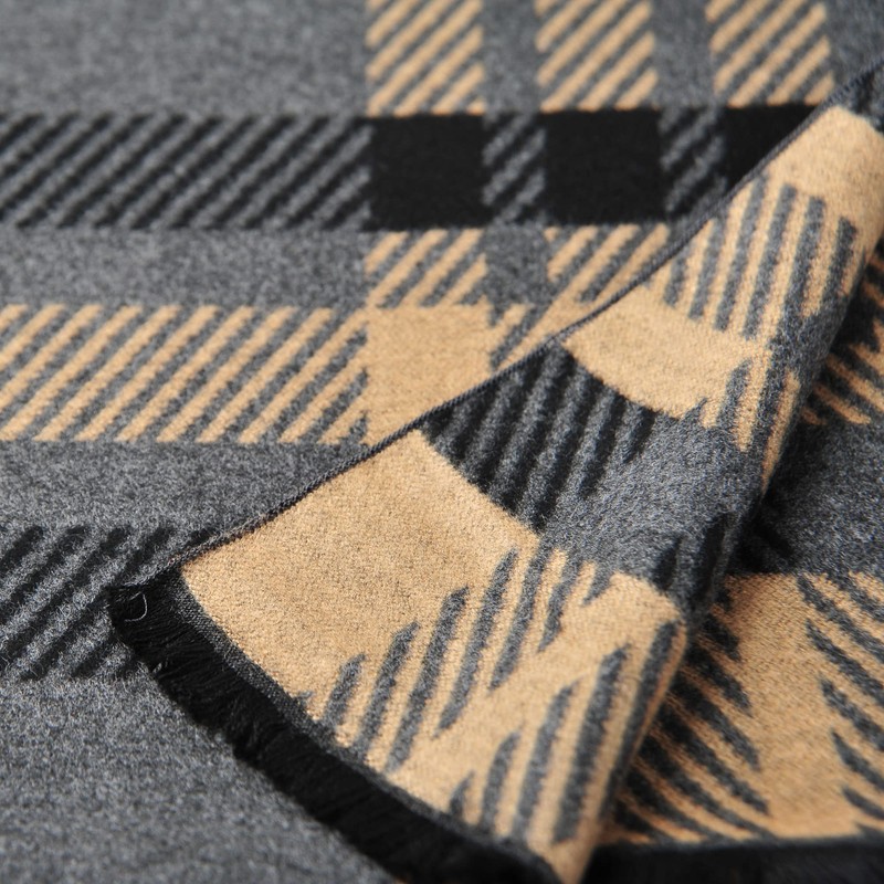 EP Mode Men's Winter Scarf, Cashmere Feel, Super Soft & Warm (Twill Cross Camel Grey)