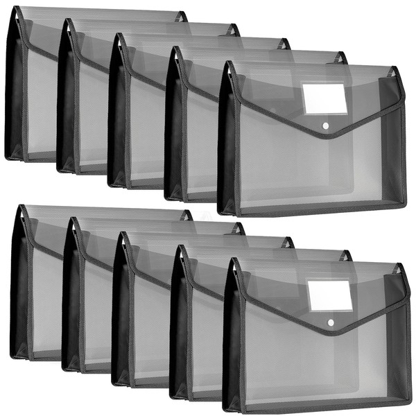 Epakh 10 Pcs Plastic File Folders Envelope Expanding File Wallet Organizer Documents Folder with Snap Closure and Pocket, A4 Size Waterproof Transparent File Pouch for School(Grey,Horizontal)