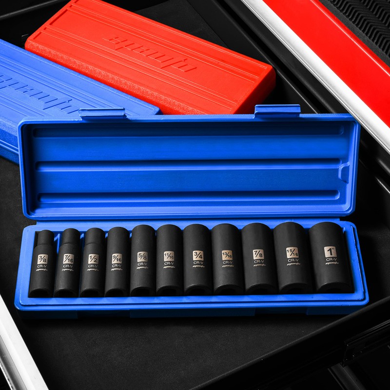 EPAuto 1/2-Inch Drive SAE Deep Impact Socket Set, Cr-V, 6 Points, 11 Sockets