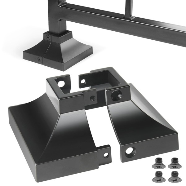 Epcee 4pcs Post 1" Aluminum Deck Post Base Cover, Post Skirt, Handrail, Stair, Porch, Deck Railing Base Brackets Covers (Black)