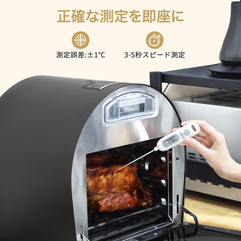 - Speed measurement 3 to 5 seconds & high accuracy ± 1°C: EPEIOS cooking thermometer can quickly measure temperature in 3 to 5 seconds. -The thermometer probe is able to measure 50 degrees Celsius to 300 degrees Celsius and provides a delicate and accurate measurement with zero error in 0.1 degree increments