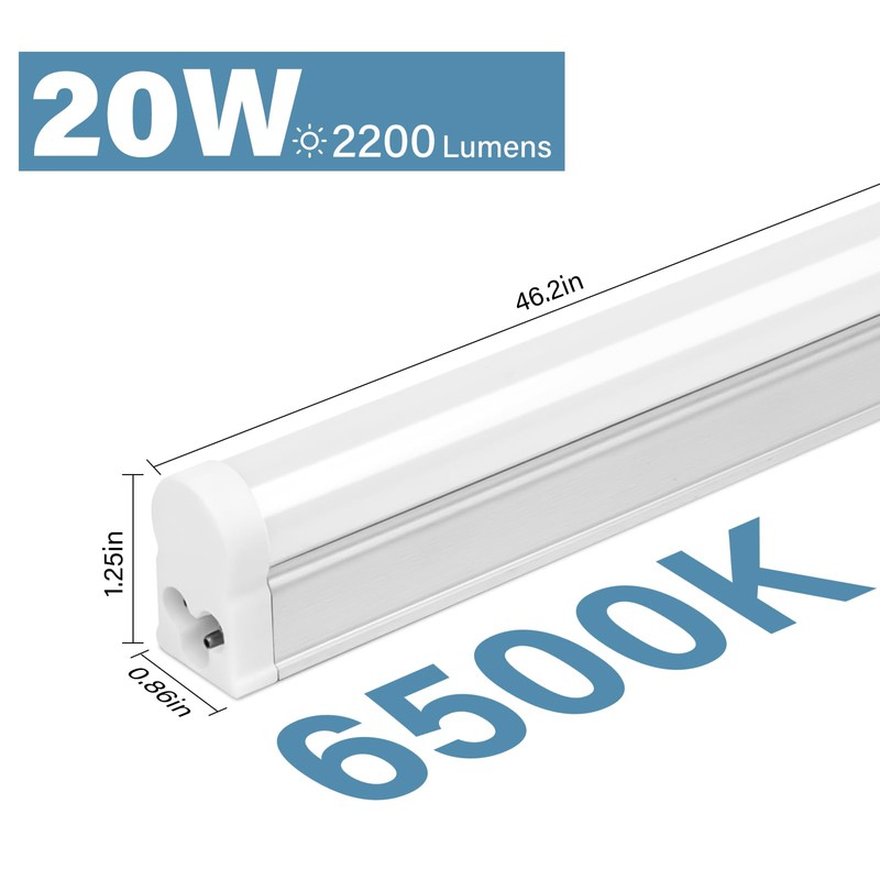 4 Pack LED T5 Integrated Single Fixture, 4FT, 2200lm, 6500K Super Bright White, 20W Utility LED Shop Light, Ceiling and Under Cabinet Light, Corded Electric with ON/Off Switch