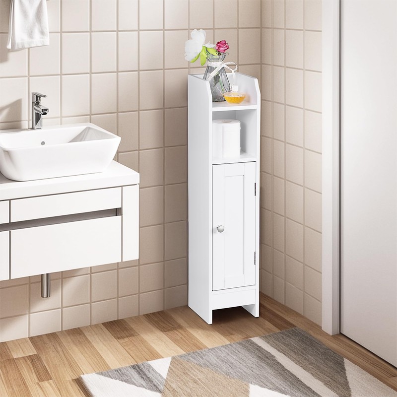 Epetlover Narrow Bathroom Storage Cabinet with Door and Adjustable Shelves Floor Standing Toilet Organizer for Small Spaces, White