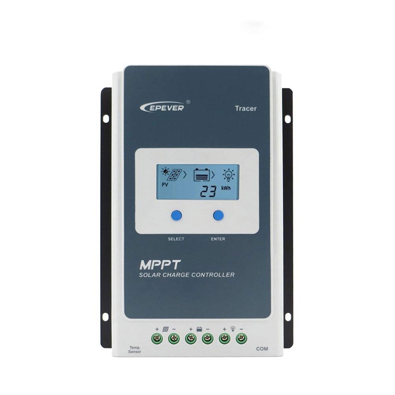 **Features:** ★Advanced MPPT technology, with efficiency no less than 99.5% ★Ultra-fast tracking speed and guaranteed tracking efficiency ★Advanced MPPT control algorithm to minimize the maximum power point loss rate and loss time ★High quality components, perfecting system performance, with maximum conversion efficiency of 98% ★Accurate recognition and tracking of multiple-peaks maximum power point ★International famous brands of ST and IR's components of high quality and low failure rate are used, which can ensure the product’s service life ★Charging power and current limitation function ★Compatible with lead-acid and lithium-ion batteries ★Battery temperature compensation function ★Real-time energy statistics function ★Overheating power reduction function ★Multiple load work modes ★The communication port adopts professional protection chip, which can provide 5VDC power supply,and has over-current and short-circuit protection ★With RS-485 communication bus interface and Modbus communication protocol, it is available to meet various communication requirements in different situations ★Monitor and set the parameters via mobile phone APP or PC software ★Full-load operation without any drop in capacity within the range of working environment temperature ★Extensive electronic protection **Imformation:** Tracer4210AN Rated Charge Current :40A Rated Charge Power:520W/12V,1040W/24V Max. PV Array Power:780W/12V 1560W/24V **Package Include:** 1 x Tracer 4210AN Solar Charge Controller