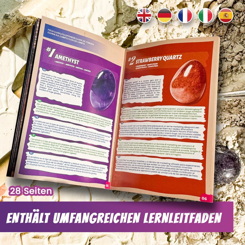 - FUN AND EDUCATION: The learning guide provides insights into the classification, formation and properties of gemstones. He helps young scientists identify their finds and makes the digging process informative and exciting.