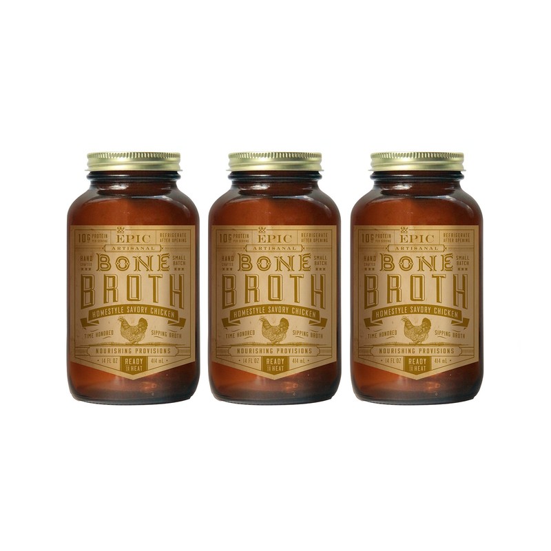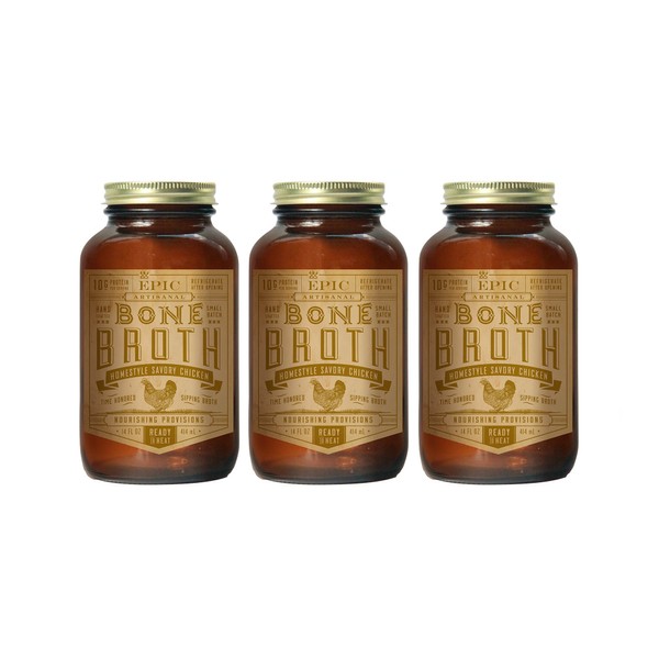 Epic Artisanal Bone Broth, Homestyle Savory Chicken, 14 oz. (3 Pack)
